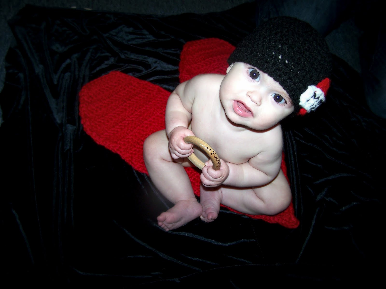 Have I mentioned that I crochet? well, in case I didn't (LOL), here's a cute pic of my 6-month-old wearing a hat I made him. The heart-shaped mat in the picture is one that is for sale in my Etsy shop. There's a link to my shop at the top of this page for anyone interested in my crocheted goodies.