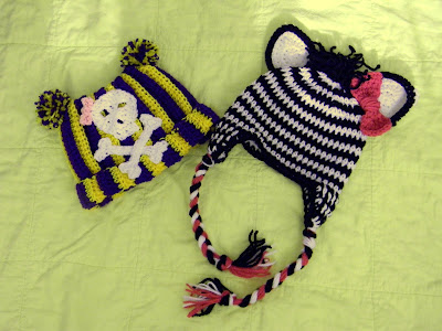 I made a couple of adorable Little Sweetheart hats in a really soft, fuzzy yarn. If you're interested in the pattern for these, it can be found at Melody's Makings. She actually has crochet and knit versions of this pattern available. My hats can be purchased on my Kristin's Kreations Facebook page.