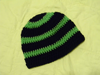 My hubby's brother and his wife are expecting a baby girl in late April 2013. They are Panthers fans so I made a hat for their little one and gave it to them for Christmas.