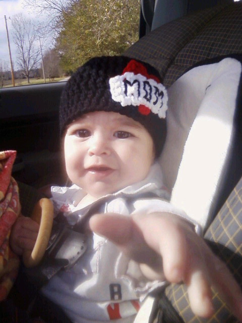 So I just wanted to post my newest hat here. It will probably be the one my son sports from now until Valentine's. This isn't the best quality picture, since I took it with my phone.
