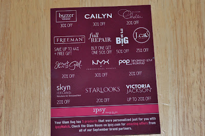 Each month Ipsy will include this info card with a list of all of the month's contributing companies and coupon codes to order from their sites.