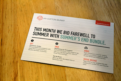 The first of today's reviews comes from My Cotton Bunny. To explain what My Cotton Bunny is, here's a little scenario: Aunt Flo has surprised you a few days earlier than normal, you're in a hurry to get out the door, when all of a sudden you realize you are out of "supplies". The last thing you have time for is a stop at the drugstore for your essentials. This is where My Cotton Bunny comes in. With each box you receive your necessary items, a gift, and some treats. My Cotton Bunny also gives you a lot of options as far as subscribing goes. First of all, choose your items, either tampons or pads. Whatever you choose will come in an unopened box to ensure the sterility of the product. Then you choose the size you need. You can also opt for pantiliners rather than tampons or pads. There are three subscription choices. You can go on a monthly service for $16.00/month. Tri-Monthly gives you a 5% discount at $45.60. Save 10% when you get the 6-month subscription at $86.40. You can also pick the date that your box ships out to ensure it's right on time with your monthly visitor.