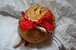 Handspun Newborn Tie-back with Red Lace Bow: $9.00