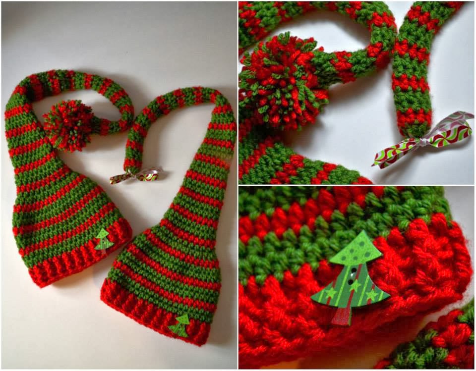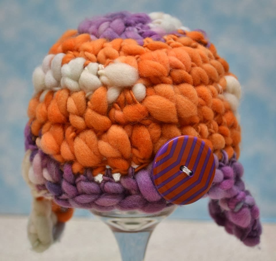 These are some cute little elf-tail hats. Two of them have pompoms on the end and the other two have bows on the end.