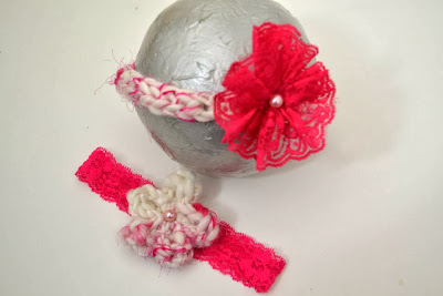Pair of newborn handspun & lace headbands