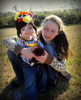 So that's what I've been up to this week in my little world of hooks 'n yarn. I will leave you with a picture of my oldest and youngest "turkeys". I hope you all have a wonderful Thanksgiving!