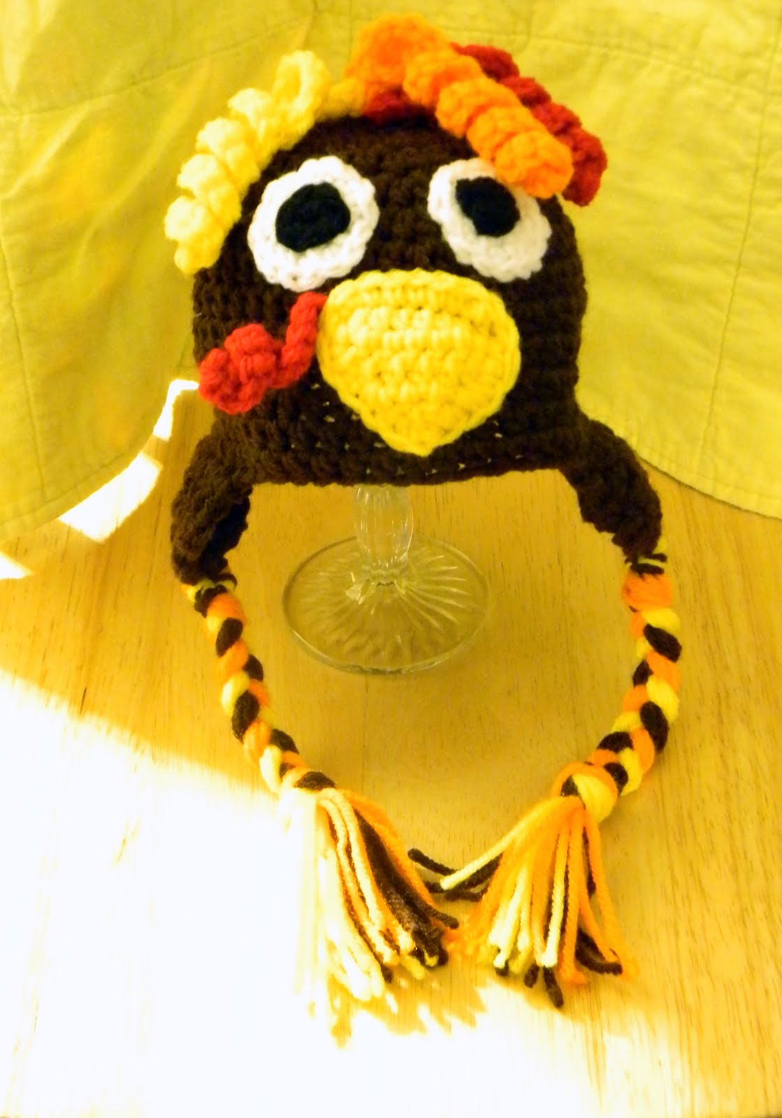 I couldn't get by Thanksgiving without trying out one of these really cute turkey earflap hats from Crochet Creations by Steph.
