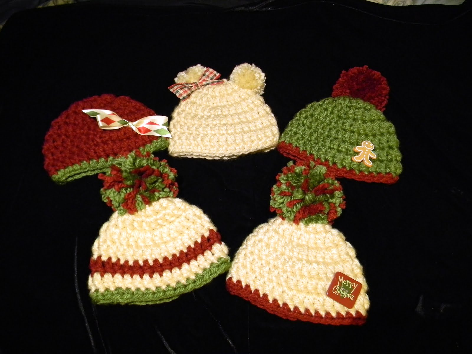 I love this pattern from Inner Hooker. It uses chunky yarn so it works up extremely quickly. Speaking of Inner Hooker, you should head over and check out her blog, The Oxford Family. If you're interested in any of these Christmas hats, there are still a few left on my Kristin's Kreations Facebook page.