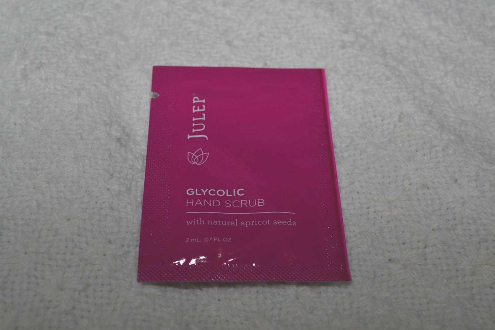 Julep says they will add in little freebies each month in their boxes, and this is what I got. This is a sample of their Glycolic Hand Scrub. According to their site, this is a new item. I have already used this sample for review purposes and I love it! I will definitely order some more when it's time for next month's box. Since I earn my living crocheting, I sometimes work with delicate yarns that even the smallest amount of dry skin will catch on, so this will be perfect for me. It smells very nice and my hands were so soft and smooth after I used it. Their site says you can use it as a body scrub and it's even gentle enough to be used on your face (which I thought of immediately after using it). A full-size tube of this is $23.00 so the approximate value of this sample would be around $0.52.