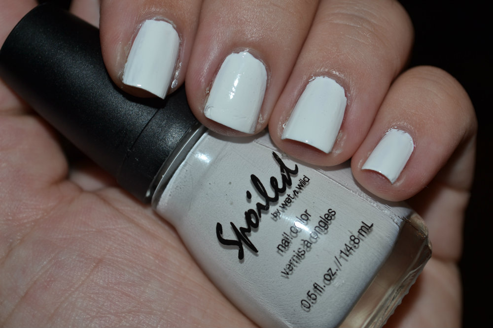 Since I was using neon colors and they tend to be a bit sheer, I started out with a coat of white polish. This particular one is called CORRECTION TAPE from Spoiled by Wet 'N Wild.