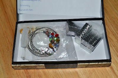I suppose that since it's October I should probably finished all of my September box reviews. The next box in my stack is from Bamshell. I believe this is a fairly new company. They are a jewelry subscription service that costs $18.99/month for 3-4 pieces of jewelry. Bamshell does not send info cards in their boxes, so I am not sure of the actual value of the items, but I was very pleased with what I received. Check out how adorable the box is right out of the envelope it comes packaged in.
